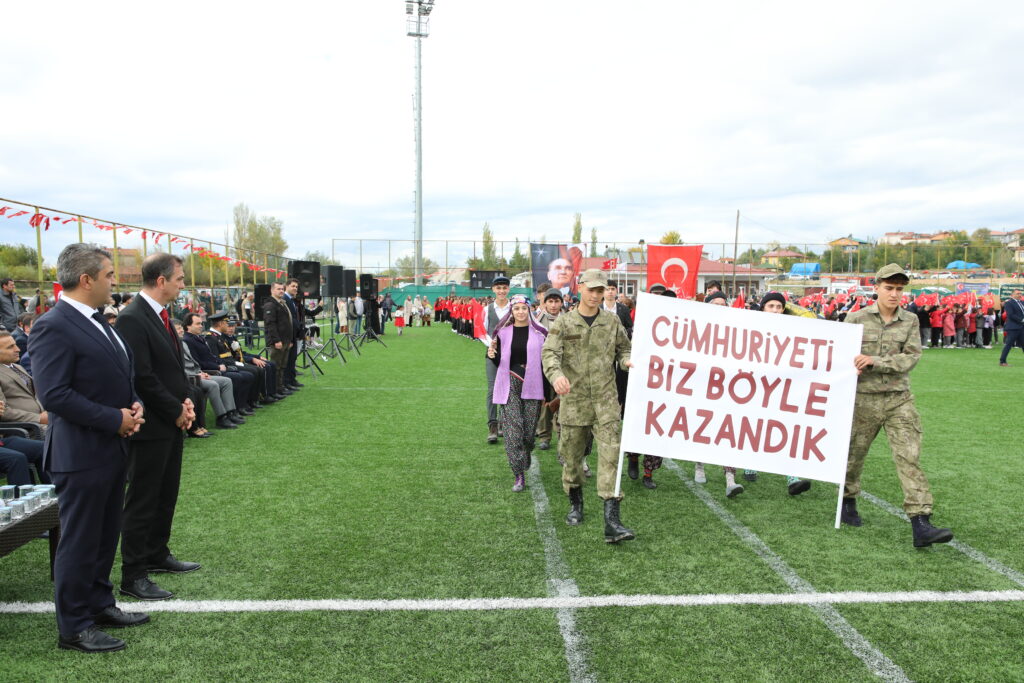 Gerçekleştirilen törende öğrencilerimizin hazırladığı birbirinden renkli gösteriler büyük beğeni toplarken, vatandaşlarımızın yoğun katılımıyla Cumhuriyet coşkusu doruğa ulaştı.