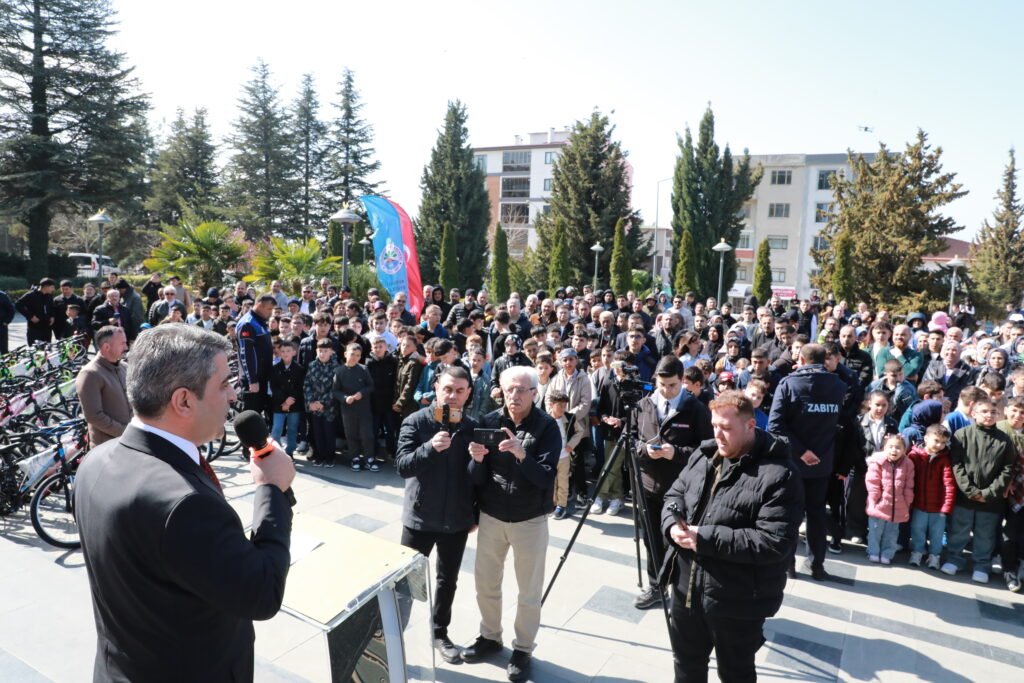 Ramazan Bayramı’nın ikinci günü belediye hizmet binası önünde düzenlenen törende, proje kapsamında başarılı bulunan çocuklarımıza bayram hediyesi olarak bisikletleri verildi.