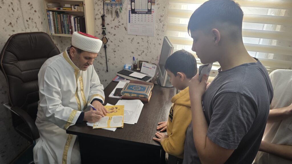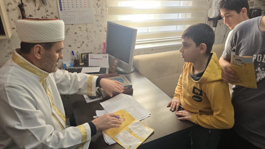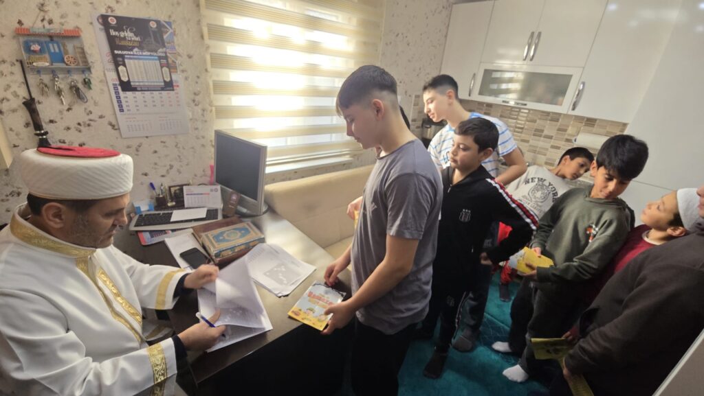 Ramazan ayının manevi iklimini çocuklarımızla birlikte yaşamak amacıyla hayata geçirilen uygulama kapsamında evlatlarımız camilerde vakit namazlarında bir araya geliyor. İlçemizin farklı mahallelerindeki camilerde gerçekleştirilen programa çocuklarımızın yoğun ilgisi ve katılımı, Ramazan’ın ruhunun yeni nesillere aktarılması adına büyük bir memnuniyet oluşturuyor. Çocuklarımız hem ibadetin güzelliğini öğreniyor hem de Ramazan’ın birlik, paylaşma ve kardeşlik ruhunu yaşayarak tecrübe ediyor.